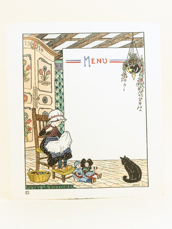1 menu vierge sur Canson format 25 x 22 cm., Editions Gallais, 1916 Magnifique exemplaire en parfait état (comme neuf).