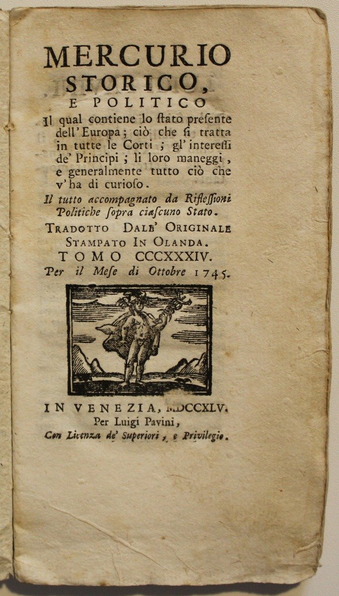 Mercurio storico e politico in qual contiene lo stato presente dell'Europa. Per il mese di Ottobre 1745. Il tutto accompagnato da Riflessioni Politiche sopra ciascuno Stato