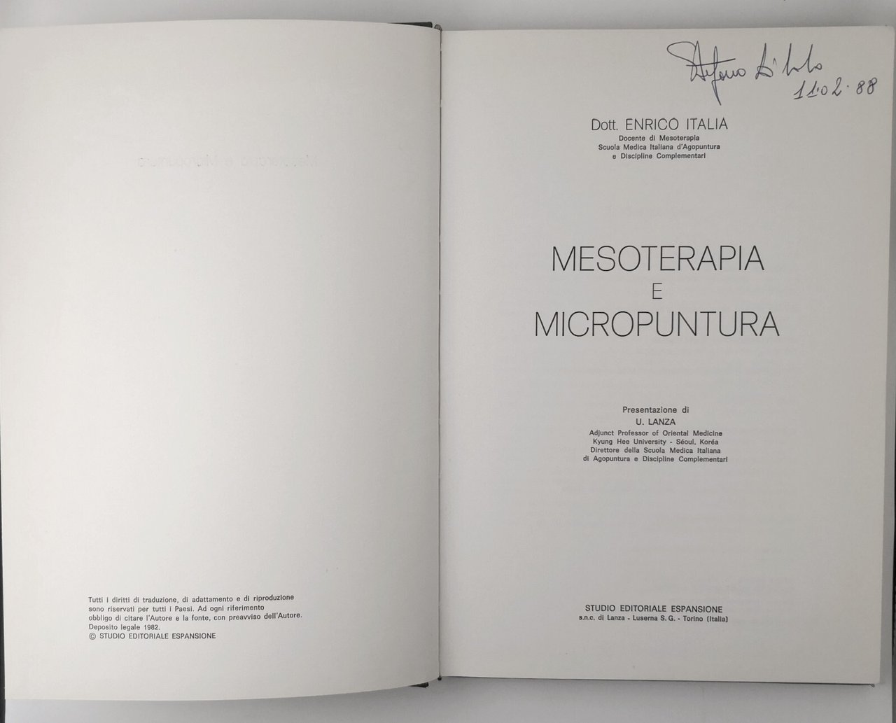 MESOTERAPIA E MICROPUNTURA di Enrico Italia 1982 Editoriale Espansione Libro