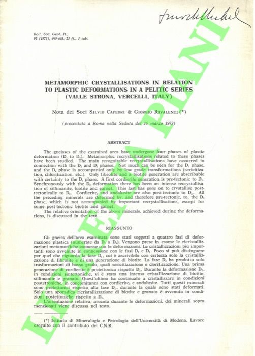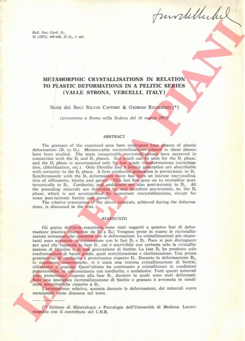Metamorphic Crystallisations in Relation to Plastic Deformations in a Pelitic Series (Valle Strona, Vercelli, Italy) .