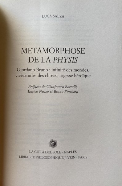 Titolo: Métamorphose de la Physis. Giordano Bruno: infinité des mondes, vicissitudes des choses, sagesse héroïque