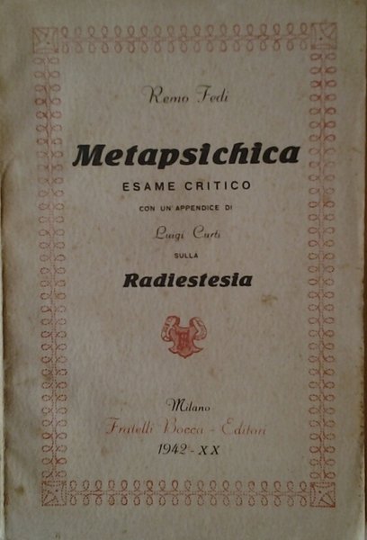 METAPSICHICA. ESAME CRITICO. CON UN'APPENDICE DI LUIGI CURTI SULLA RADIESTESIA.