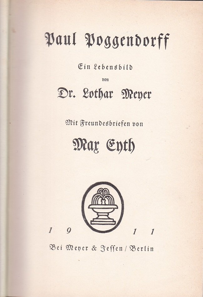 Meyer, Lothar: Paul Poggendorff. Ein Lebensbild.