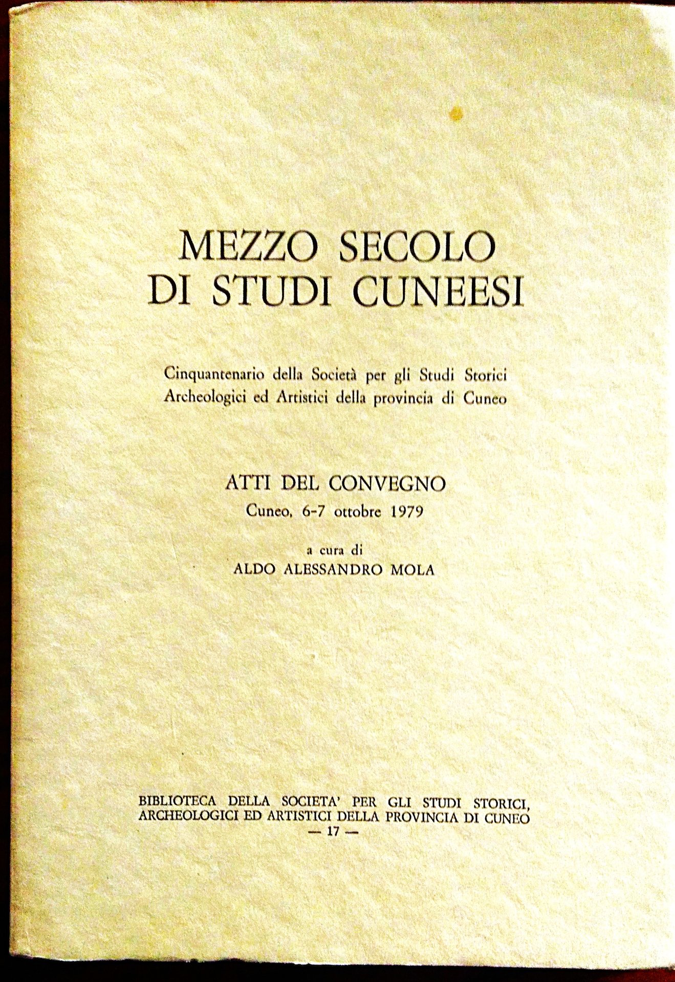 Mezzo secolo di Studi Cuneesi. Cinquantenario della Società per gli Studi Storici, Archeologici ed Artistici della Provincia di Cuneo. Atti del Convegno Cuneo 6-7 ottobre 1979. A cura di Aldo Alessandro Mola.