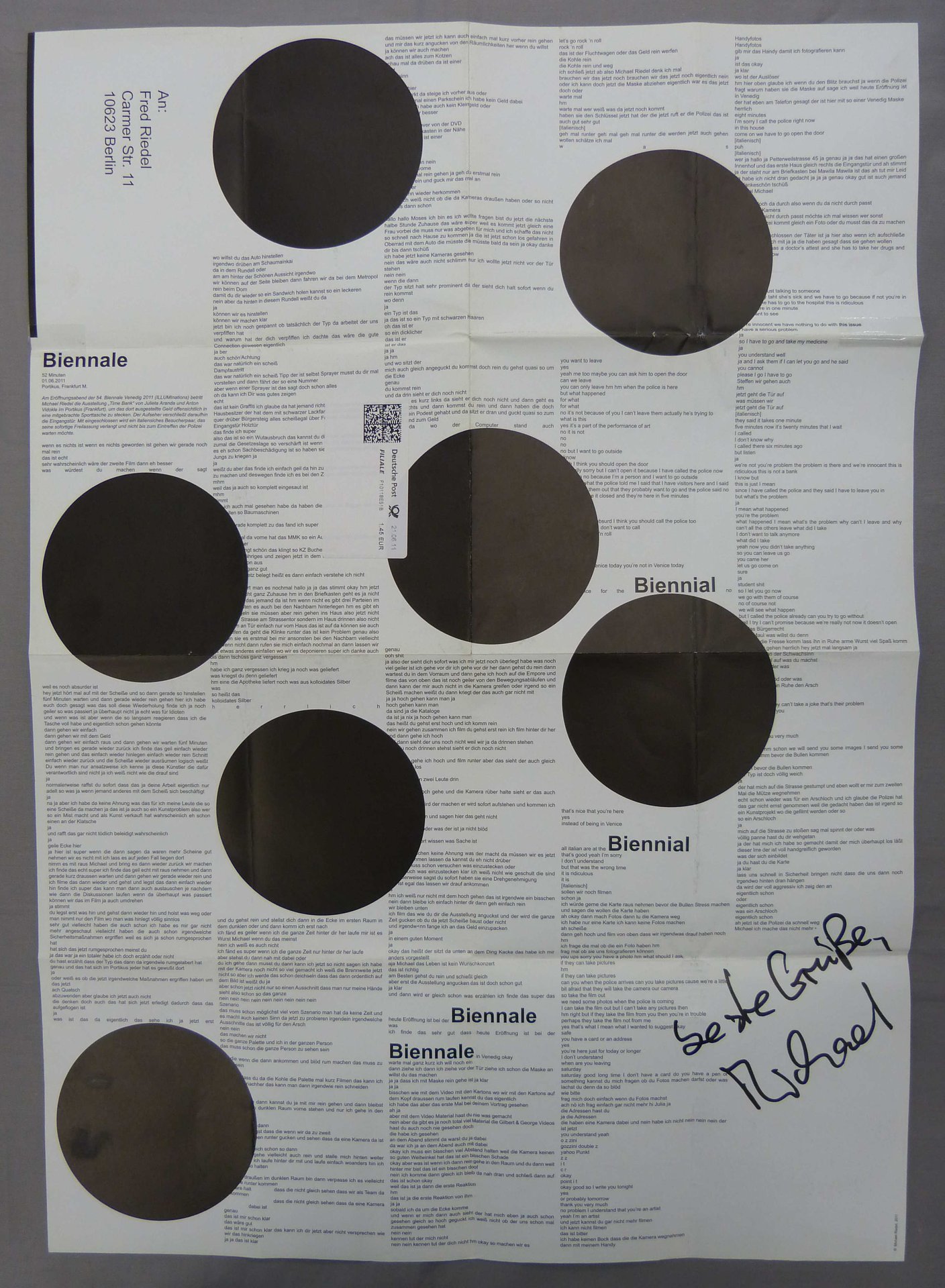 Michael Riedel. Biennale 52 Minuten. 01.06.2011. (Signiert vom Künstler / Signed by the artist!)