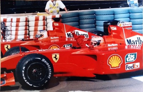 Michael Schumacher - Rubens Barrichello Ferrari F-2001. Test Fiorano. Original Photo Paper. Questa fotografia fa parte di un lotto di scatti realizzati dall'editore che ha prodotto il volume: "Anni d'oro. Gli anni di Michael Schumacher in Ferrari" di Victor Seara edito da Grantour editore nel 2003. Come si evince dal cartiglio retrostante la foto questa è la ART. FT 88.