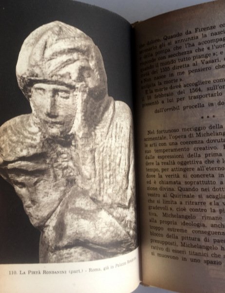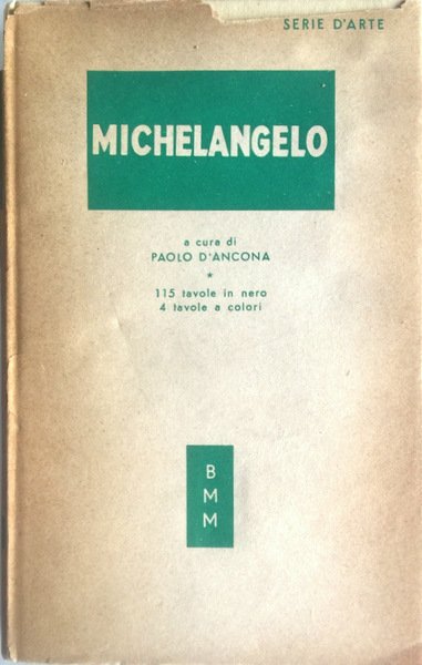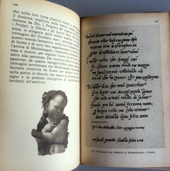 Soggetti: Critica d'arte, Storia dell'arte moderna, Biografie, Cinquecento, Umanesimo, Rinascimento italiano, Italian Renaissance, Firenze, Pittura, Scultura, Opere generali, Biografie, Monografie, Giudizio Universale, Capolavori, Cupola San Pietro, Crocifissione, Sonetti, Poesie, Porta Pia, Ercole, David, Medici, Prigione, Sibilla Cumana, Michelangelo Buonarroti, Scultori, Opere, Umanesimo, Committenze, Mecenati, Artisti illustri, Libri vintage, Illustrati, Autografati, Pittori, Dipinti, Affreschi, Marmo, Carrara, Morale, Coscienza religiosa, Scritti, Poesie, Disegni, Schizzi, Matita, Leonardo, Magnifico, Chiesa, Savonarola, Riforma, Classici, Cultura classica, Sonetti, Dante, Busto di Bruto, Progetto, Facciata, Crocifissione, Creazione, Adamo, Sacra Famiglia, Cappella funeraria, Monumenti, Ignudo, Prigione, Sibilla Eritrea, Cumana, Delfica, Ezechiele, Profeti, Daniele, Geremia, Giona, Separazione della luce dalle tenebre, Anderson, Alinari, Giorgio Vasari, Bibliografia, De Hollanda, Ascanio Condivi, Steinmann, Tolnay, Milanesi, Delogu, Venturi, Art Critics, History of Modern Art, Biographies, Cinquecento, Humanism, Florence, Painting, Sculpture, General Works, Biographies, Monographs, Last Judgment, Masterpieces, Saint Peter's Dome, Crucifixion, Sonnets, Poems, Prison, Sculptors, Works , Humanism, Commendences, Patrons, Famous Artists, Vintage Books, Illustrated, Autographed, Painters, Paintings, Frescoes, Marble, Moral, Religious Consciousness, Writings, Poems, Drawings, Sketches, Pencil, Magnificent, Church, Reformation, Classics, Classical Culture , Sonnets, Bust of Brutus, Project, Facade, Crucifixion, Creation, Adam, Holy Family, Funerary Chapel, Monuments, Sybil Eritrea, Cumana, Delfica, Ezekiel, Prophets, Daniel, Jeremiah, Jonah, Separation of light from darkness, Bibliography