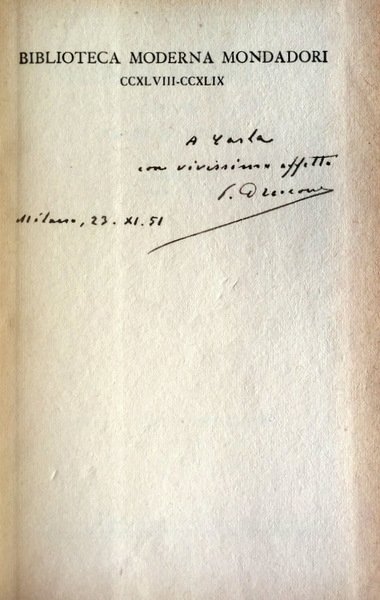DISPONIBILITÀ GARANTITA AL 99%; SPEDIZIONE ENTRO 12 ORE DALL'ORDINE. CON AUTOGRAFO E DEDICA DELL'AUTORE IN ANTIPORTA. OTTIME CONDIZIONI GENERALI, LIEVI SEGNI DEL TEMPO, LIEVE BRUNITURA. VOLUMETTO RILEGATO; SOVRACCOPERTA DI CARTA USURATA E CON LIEVI MANCANZE.