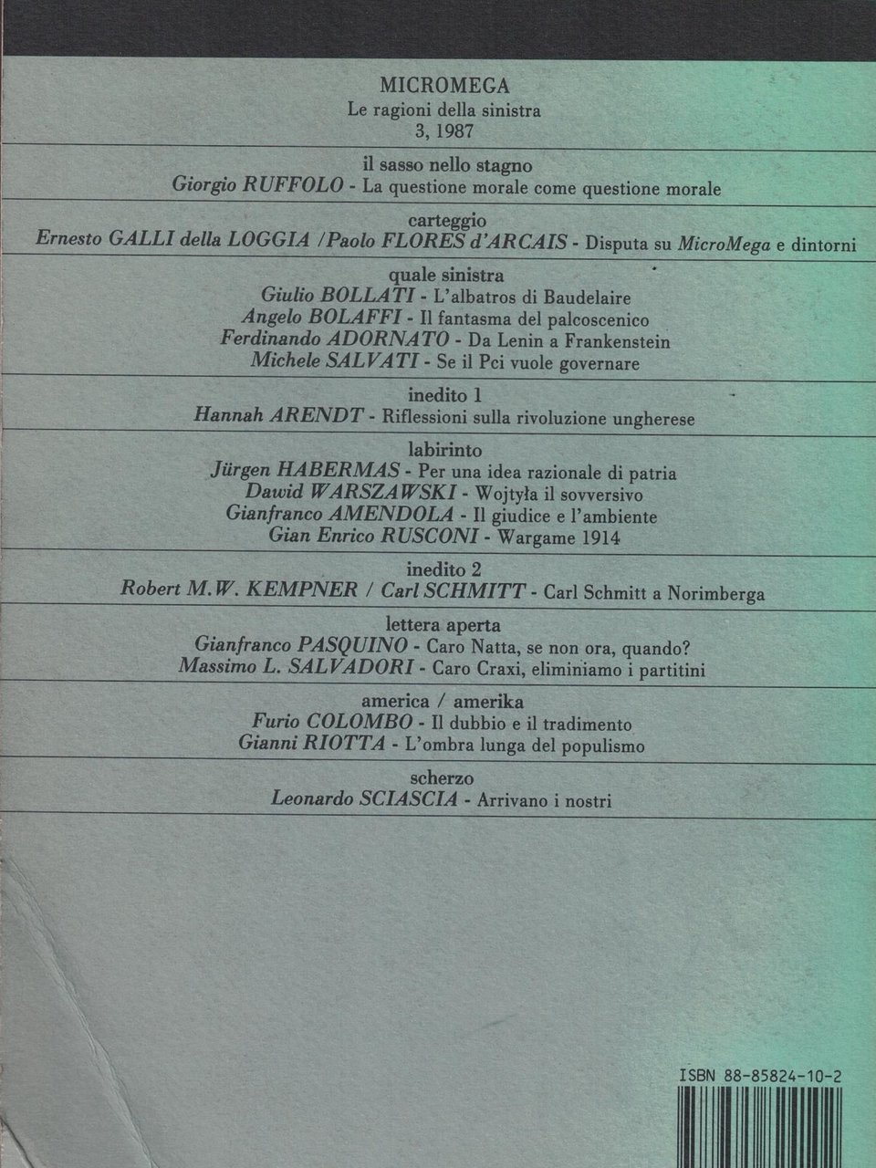 Rivista trimestrale n.3/87 luglio-settembre single_issue_magazine 232 8885824102 Molto buono (Very Good) Libro usato proveniente da collezione privata,lievissime tracce d'uso sulla copertina.Le pagine risultano lievemente imbrunite dal tempo. All'interno in ottime condizioni. Interni leggermente allentati..