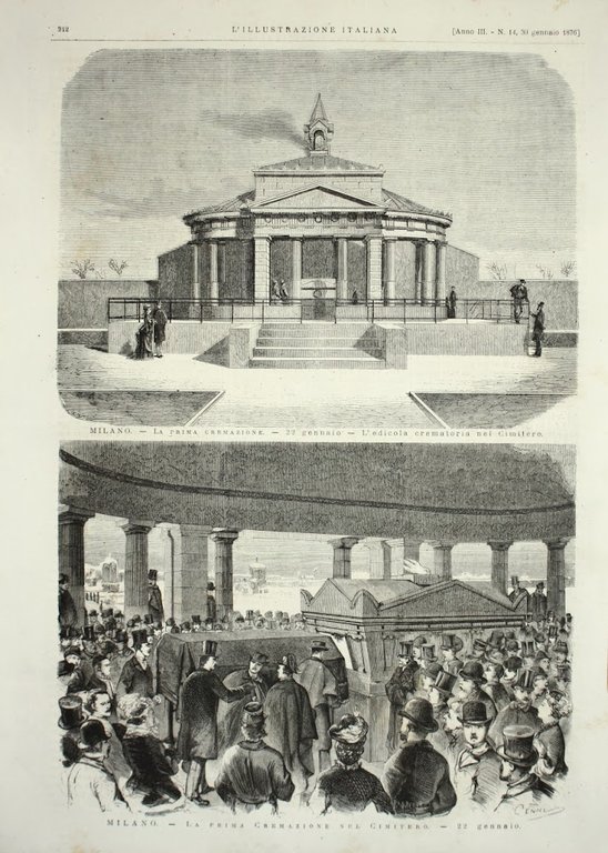 Milano. La prima cremazione nel cimitero. Stampa 1876