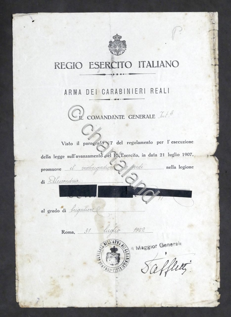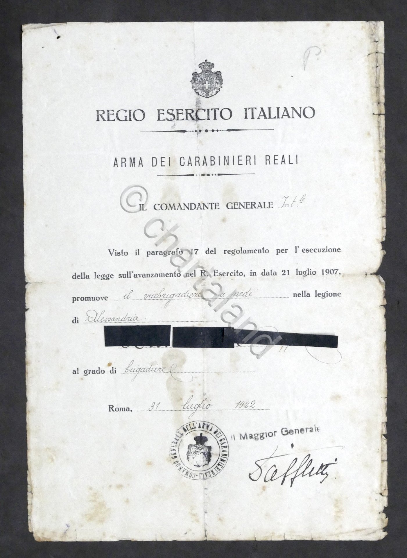 Militaria - Arma dei Carabinieri Reali - Promozione a Brigadiere - 1922