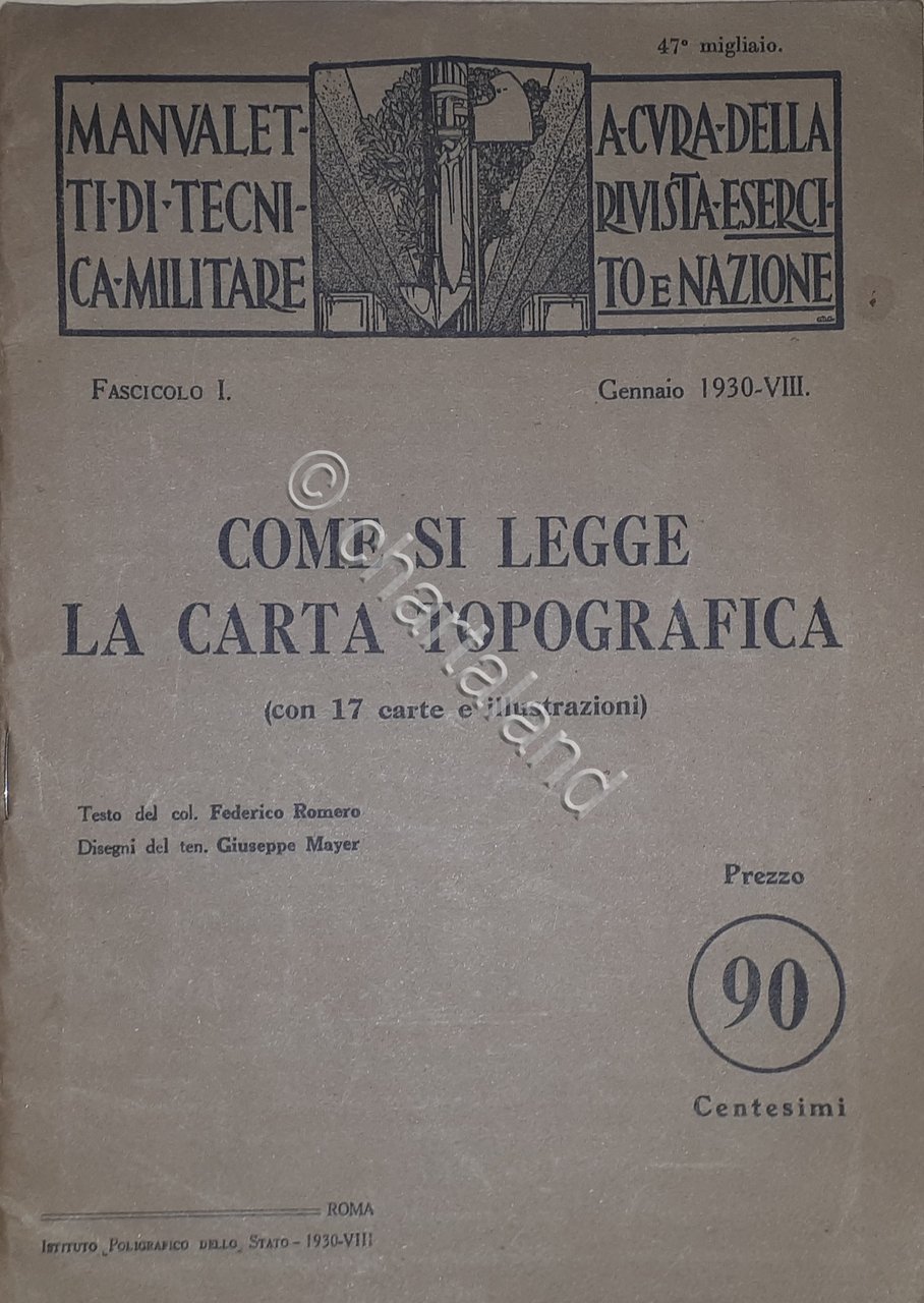 F. Romero - Come si Legge la carta topografica - Fascicolo I - Gennaio 1930 Testo in lingua italiana, Pag. 39 con 17 carte e illustrazioni - Disegni del ten. Giuseppe Mayer Copertina morbida Condizioni molto buone