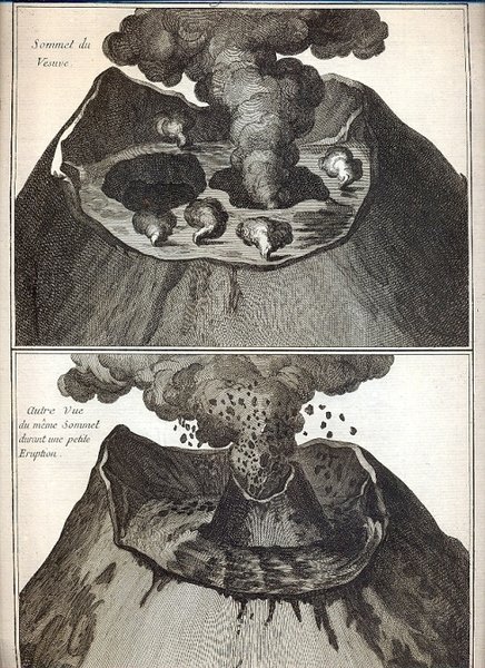 Mineralogie : Histoire naturelle, volcans. Sommet du Vesuve. Autre vue du meme sommet durant une petite eruption.