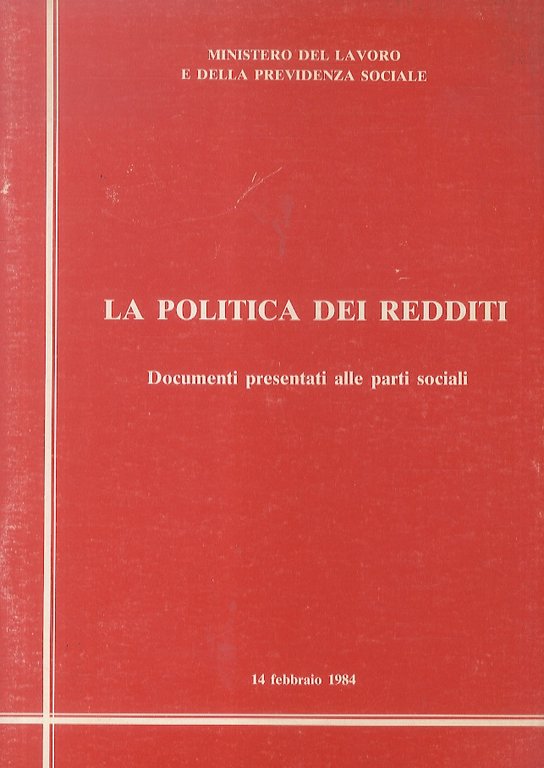 Ministero del Lavoro e della Previdenza Sociale. La politica dei redditi. Documenti presentati alle parti sociali.