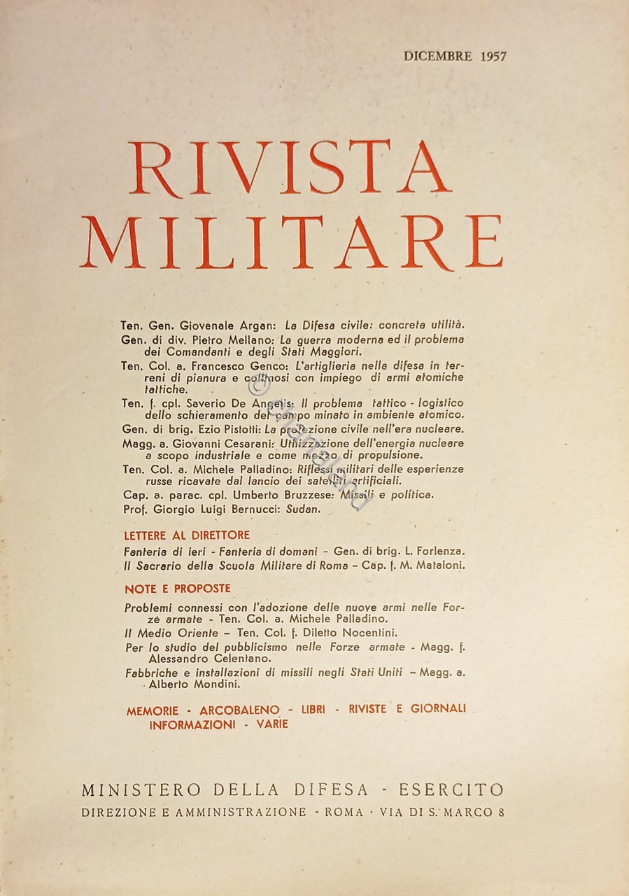 Ministero della Difesa - Esercito - Rivista Militare - Dicembre 1957