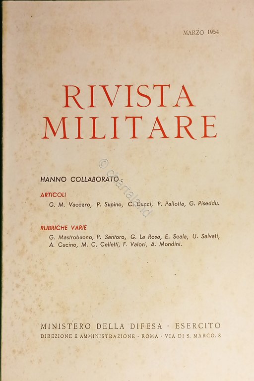 Ministero della Difesa - Esercito - Rivista Militare - Marzo 1954