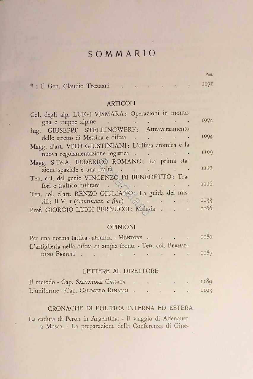 Ministero della Difesa - Esercito - Rivista Militare - Ottobre 1955