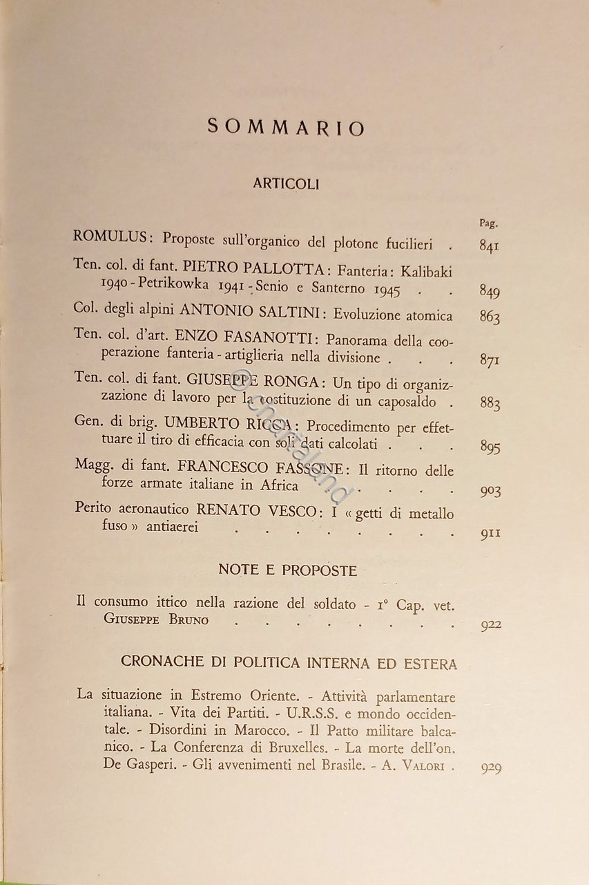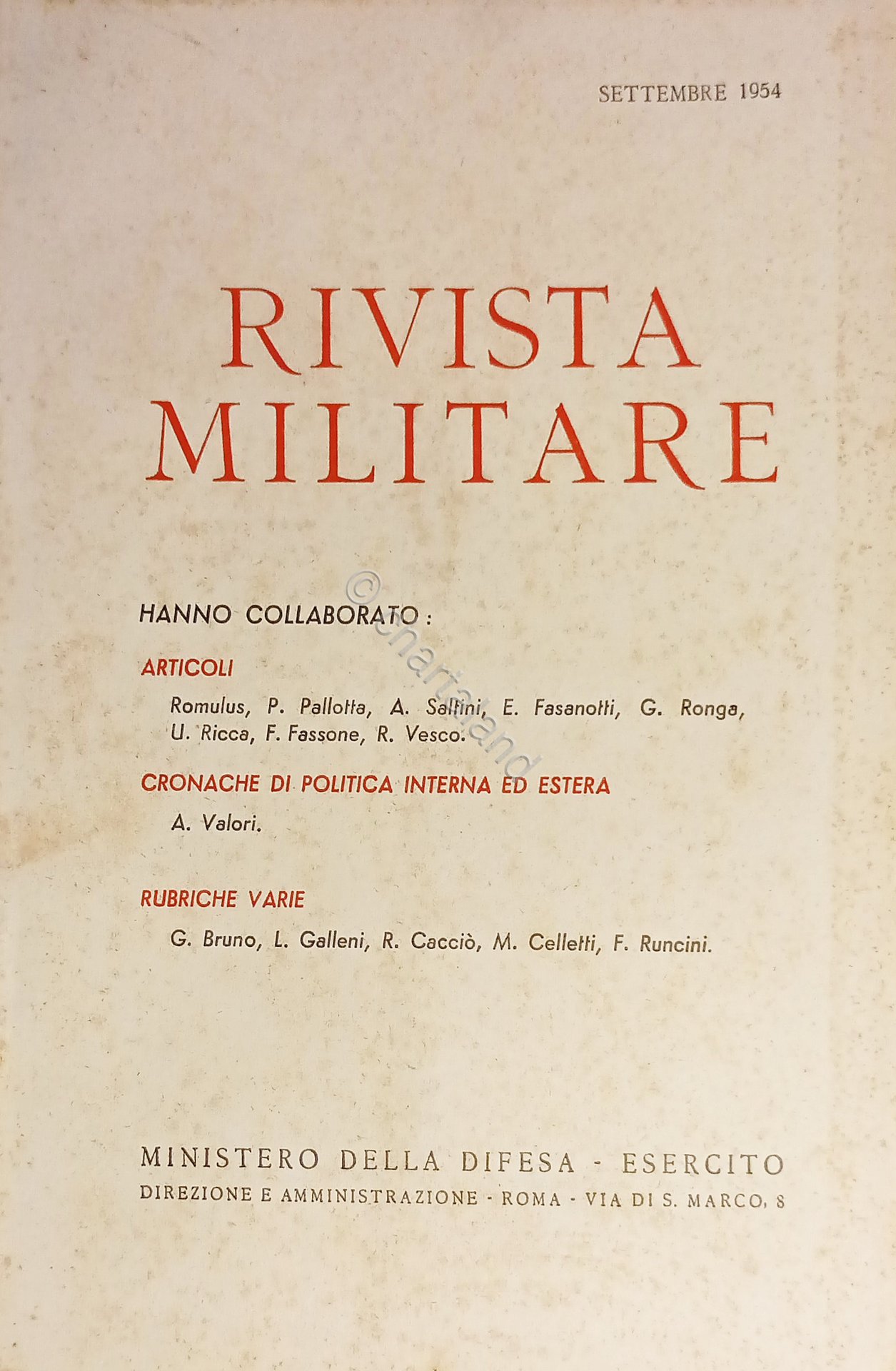 Ministero della Difesa - Esercito - Rivista Militare - Settembre 1954
