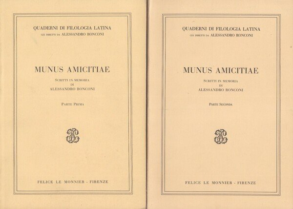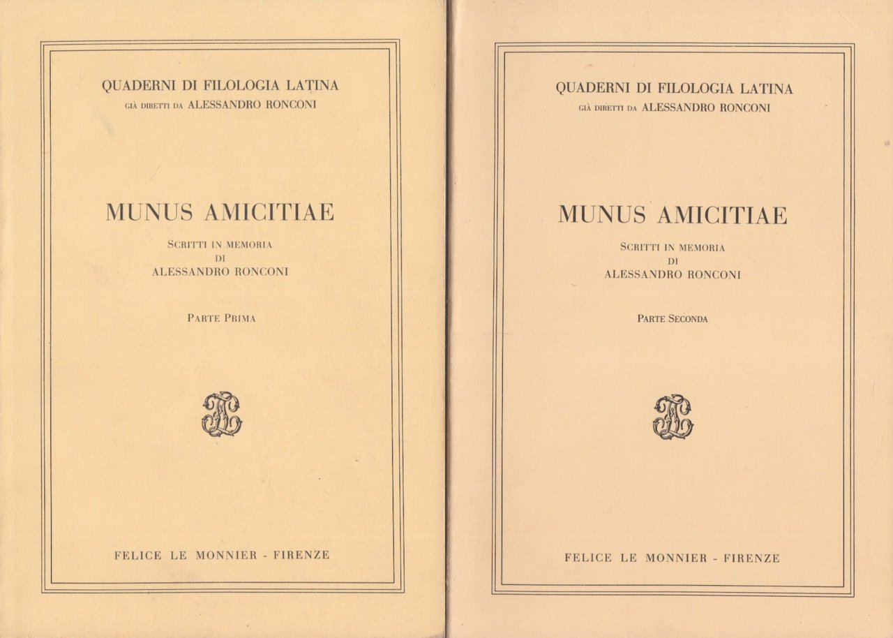 Minus Amicitiae Scritti in memoria di Alessandro Ronconi Parte Prima Parte Seconda