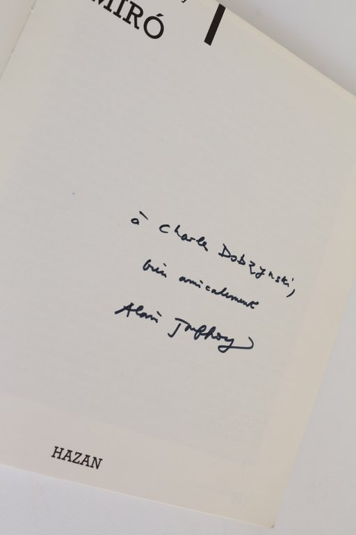 Fernand Hazan | Paris 1987 | 16 x 18 cm | broché | [ENGLISH DESCRIPTION ON DEMAND] | Edition originale sur papier courant. Ouvrage illustré de reproductions d'oeuvres de Joan Miro. Agréable exemplaire. Envoi autographe signé d'Alain Jouffroy au poète Charles Dobzynski.