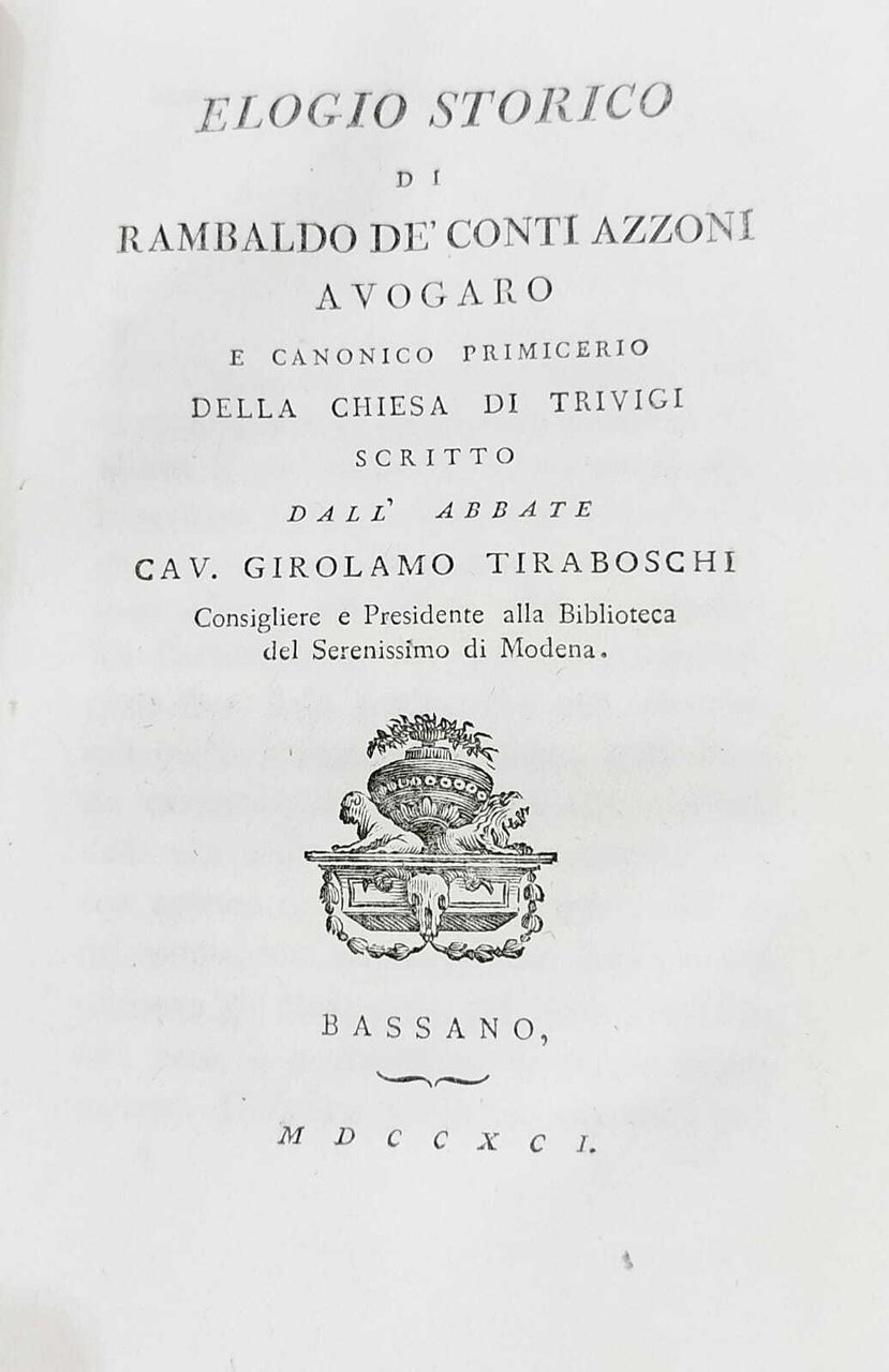 MISCELLANEA COMPOSTA DA 3 OPERE: ELOGIO DI MONSIGNOR GASPARO CERATI; DELLE LODI DEL PETRARCA DELL'ABATE SAVERIO BETTINELLI; ELOGIO STORICO DI RAMBALDO DE' CONTI AZZONI AVOGARO