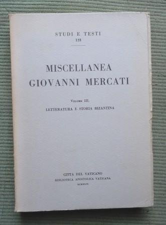 MISCELLANEA GIOVANNI MERCATI - VOL. III - LETTERATURA E STORIA BIZANTINA
