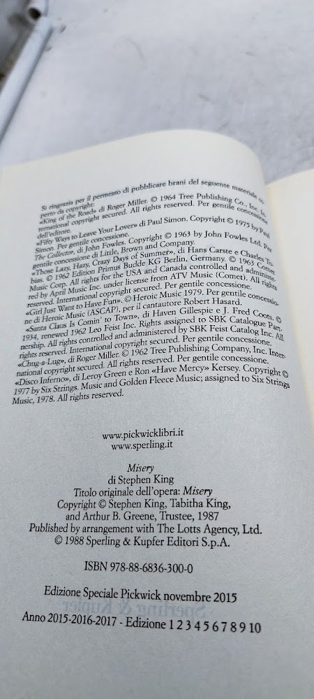 stephen king misery stephen king pickwick. , pickwick italiano, 382 °°rilegato