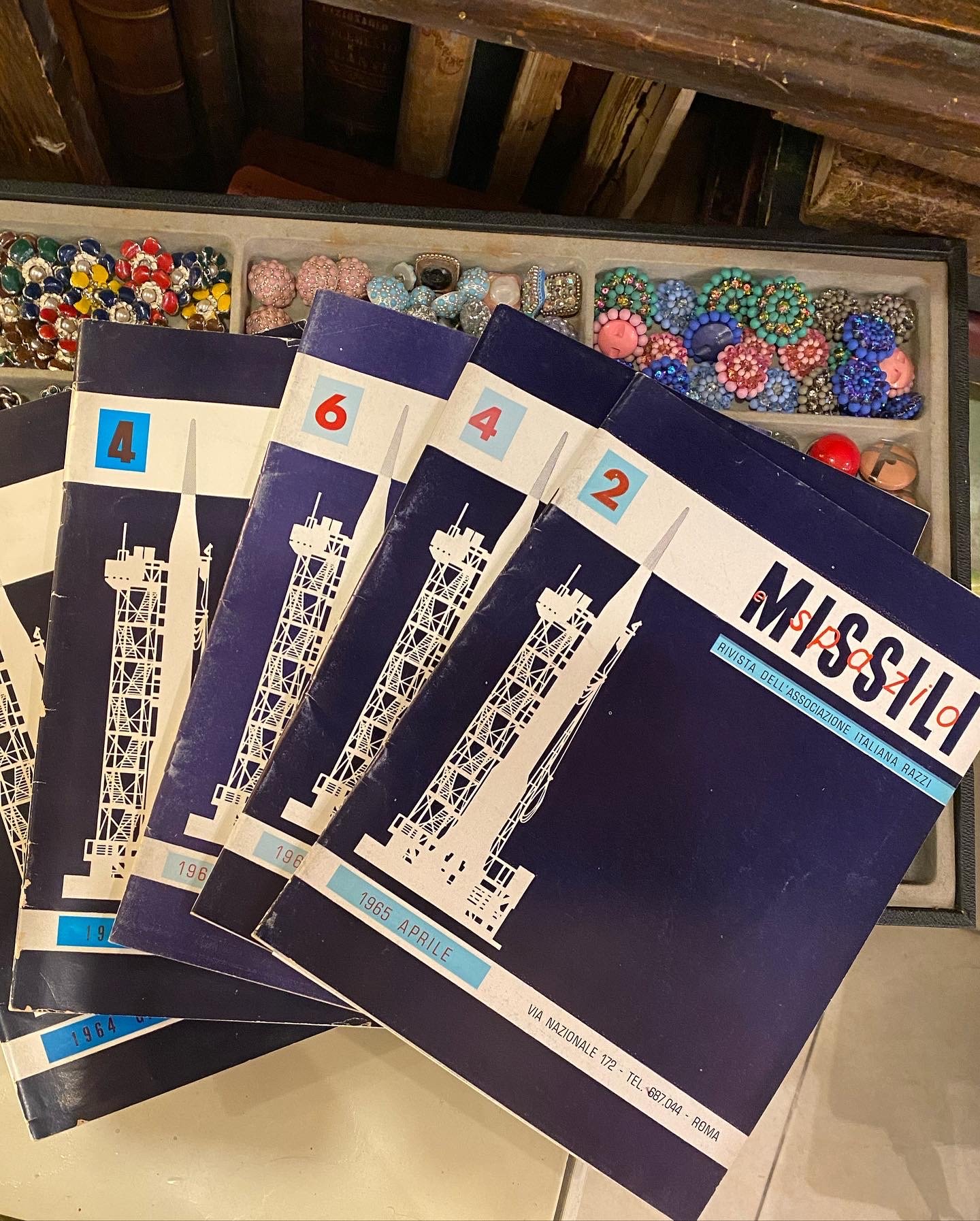Le riviste che possediamo e vendiamo insieme sono queste: GIUGNO N. 3 1964, AGOSTO N. 4 1964; APRILE N. 2 1965, AGOSTO N. 4 1965, DICEMBRE N. 6 1965. Ogni rivista si compone di circa 100/200 pagine (dipende dal numero) con qualche illustrazione b/n, molti dati scientifici e curiosità, brossura originale in ottime condizioni.