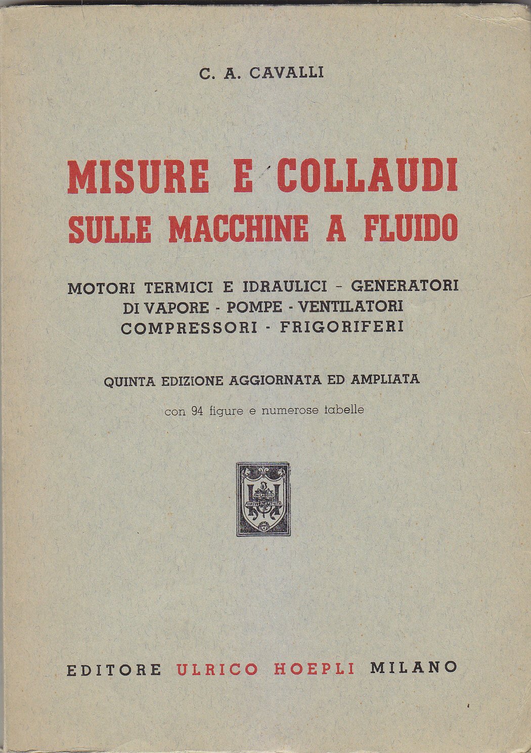 MISURE E COLLAUDI SULLE MACCHINE A FLUIDO di Cavalli 1962 Hoepli Ingegneria libr