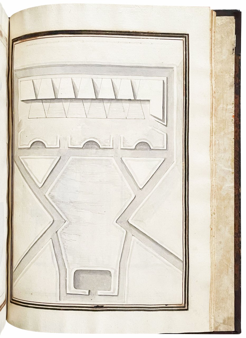 Pietro Bardet di Villanova is probably to be identified with P.P.A. Bardet de Villeneuve, a military engineer and author of a Cours de la science militaire in eleven parts printed between 1740 and 1757, and a “General Plan of the Excavations of Herculaneum” (1742). He began his military career fighting for Spain under the orders of the Marquis of Santa Cruz. When Charles III was made King of the Two Sicilies, Bardet de Villeneuve passed into his service with the title of ordinary engineer and innovated the king's military corps of engineers. From 1741 to 1745 he was director of works in the excavations of Pompeii and Herculaneum together with Rorro, replacing D'Alcubierre. His son Luigi Bardet di Villanova, also a military engineer at the service of the Bourbons between the 18th and the 19th centuries, worked primarily in the topographic field rising to the highest ranks of the military career (cf. M.G. Pezone, Un ingegnere del Genio borbonico tra Sette e Ottocento. Luigi Bardet di Villanova, in: “History of Engineering, Proceedings of the 3nd International Conference”, F.R. D'Ambrosio & S. D'Agostino, eds., Naples, 2018, pp. 235-247). The manscript may have belonged to him.