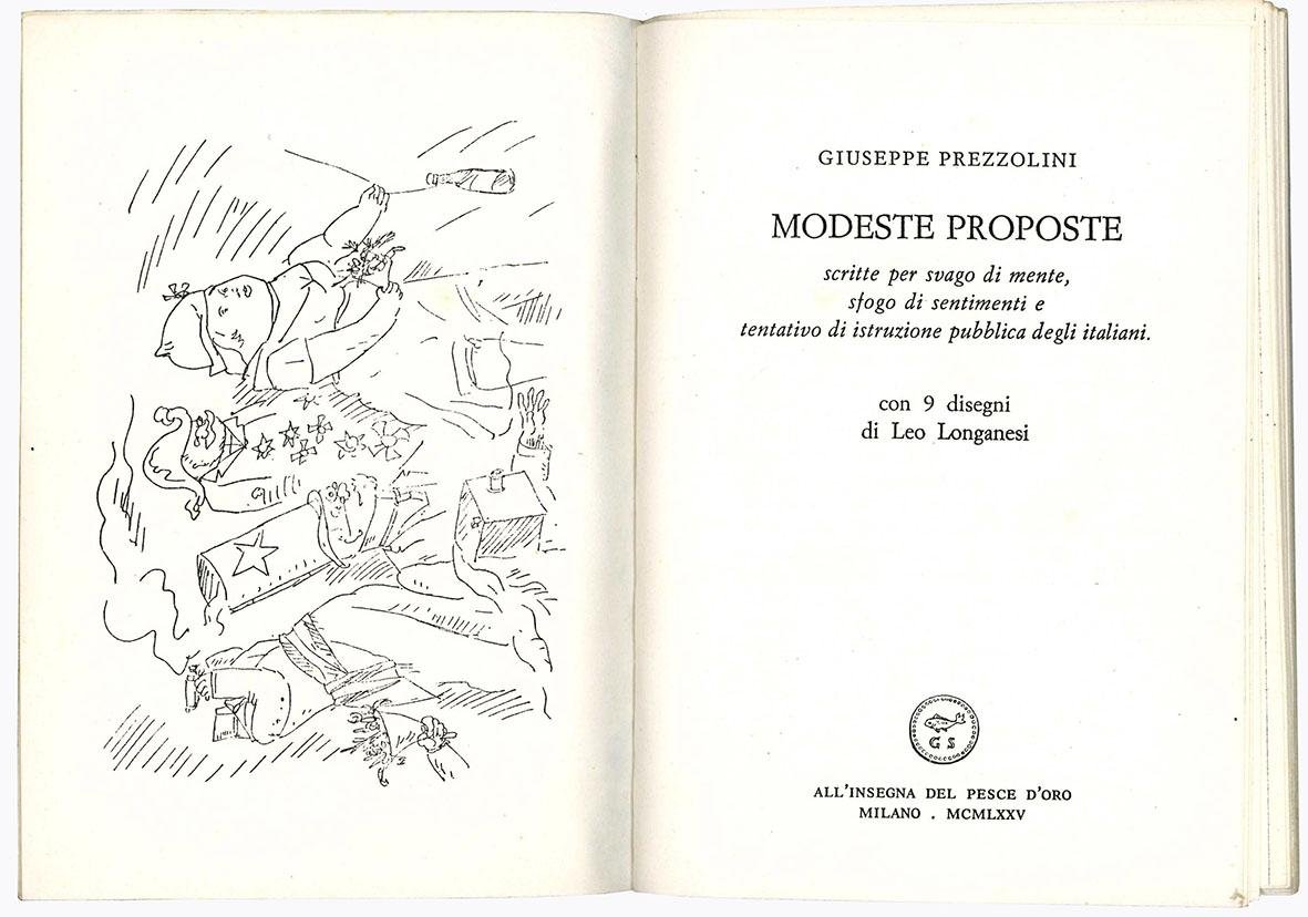 Modeste proposte scritte per svago di mente, sfogo di sentimenti e tentativo di istruzione pubblica degli italiani. Con nove disegni di Leo Longanesi