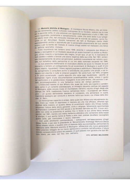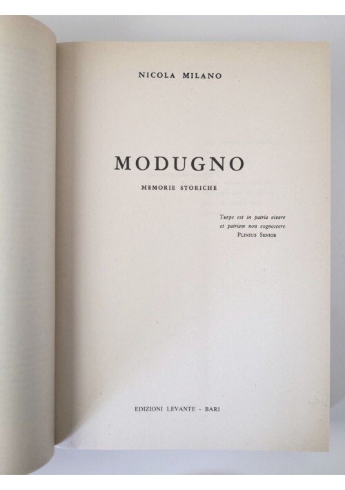 MODUGNO Memorie Storiche di Nicola Milano 1987 Levante Libro Storia Locale