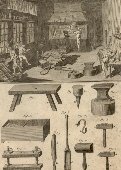 Cartella in cart. muta di cm 28,5 x 23 ca., contenente 20 inc. 1) Outils a ploter et a mouler. 2) Outils a mouler et fourneau a vent pour l'or. 3) Outils du fourneau pour l'or. 4) Fourneau a soufflet pour l'or. 5) Fourneau pour l'argent et les outils. 6) Forneau pour le billon et le cuivre. 7) Moulin des laminoirs. 8) Moulins des laminoirs. 9) Laminoirs. 10) Recuit de l'or et les outil. 11) Recuit de l'argent et billon et les outils. 12) Coupoir. 13) Forneau du blanchiment. 14) Forneaud du blanchiment et les outils. 15) Balancier. 16) Machine pour la marque sur tranche. 17) Lavures. 18) - 19) - 20) Monnoies des principales villes de l'europe.