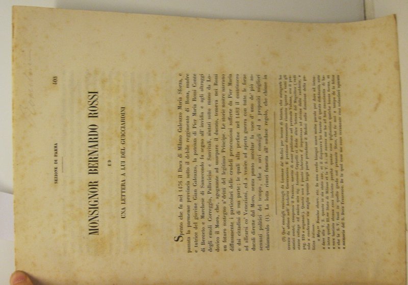Monsignor Bernardo Rossi ed una lettera a lui del Guicciardini