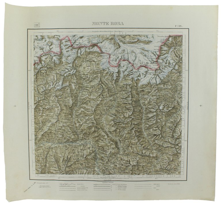 MONTE ROSA. Foglio 29 della Carta d'Italia, scala di 1:100.000, cm 57,5x52