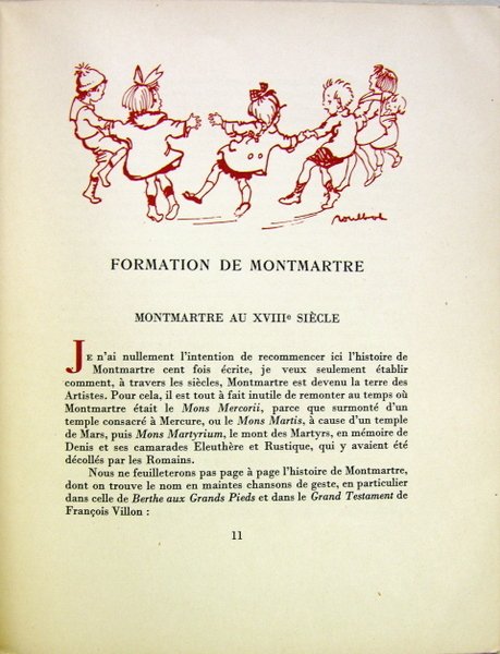 Editions Georges Girard, Paris, 1947. In/4 carré broché, couverture illustrée d'une vignette, dessins de 31 artistes montmartrois (Asselin, Camin, Galanis, Poulbot, S. Valadon, M. Jacob), 186 pages. Exemplaire enrichi d'un envoi de l'auteur.
