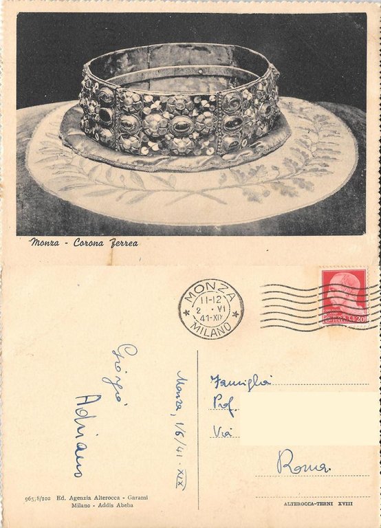 Monza. Corona Ferrea. Alterocca. Viaggiata 1941
