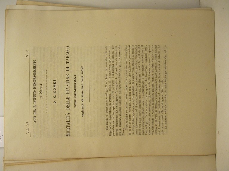 Mortalita' delle piantine di tabacco nei semenzai cagionata dal marciume della radice