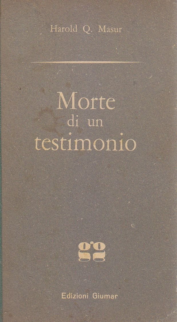 MORTE DI UN TESTIMONIO di Harold Q Masur. Edizioni Giumar senza data