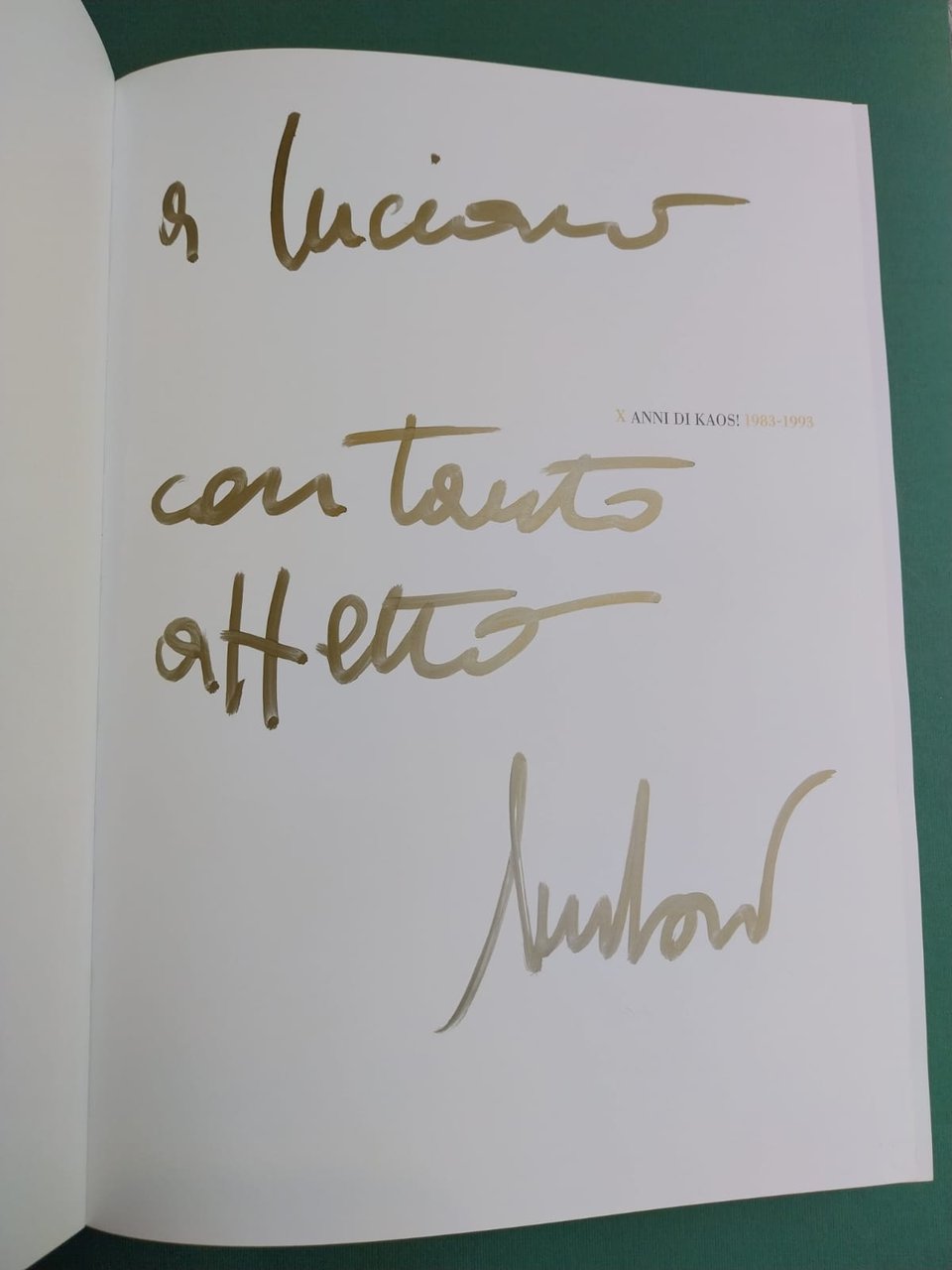 In-4°, pp. 384 interamente illustrate a colori a piena pagina, tela editoriale con sovracc. illustrata. Dedica autografa alla prima carta. tagli in oro. In concomitanza con X Years of Chaos!, una retrospettiva di 10 anni del suo lavoro al Museo della Permanente, lo stilista è tornato sulla passerella. Come la mostra, questa sfilata ha messo in luce un decennio di successi, dai costumi da bagno con slogan ai pezzi impreziositi di tutto, dalle rose realizzate con cerniere agli indumenti a misura di Barbie. È stata l'ultima sfilata di Moschino, nel 1994, lo stilista, a soli 44 anni, morì per complicazioni dovute all'AIDS.