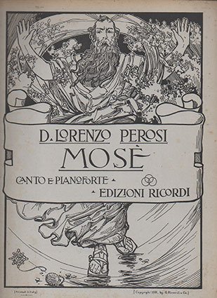 Poema sinfonico vocale in un prologo e tre parti. Testo di A. Cameroni e P. Croci. Riduzione per canto e pianoforte di Ugo Solazzi Timbro a secco 7/1922. P. N. 104431.