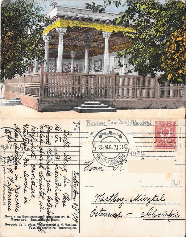 Mosquée de la place Voskresenski à N. Marilan (Oblast de Kirov). Viaggiata 1914