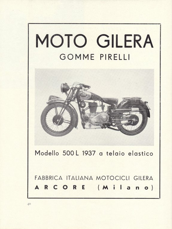 Moto Gilera modello 500L 1937 a telaio elastico. Advertising 1937