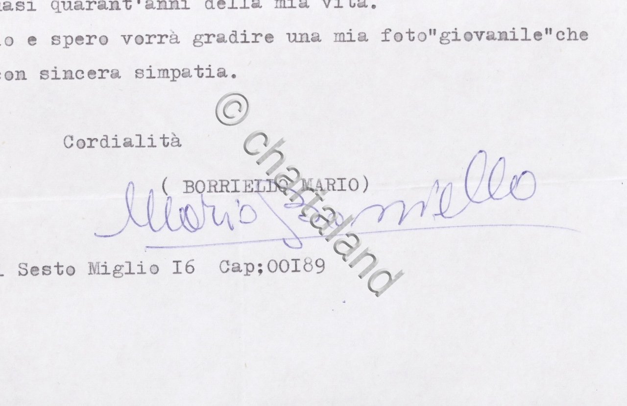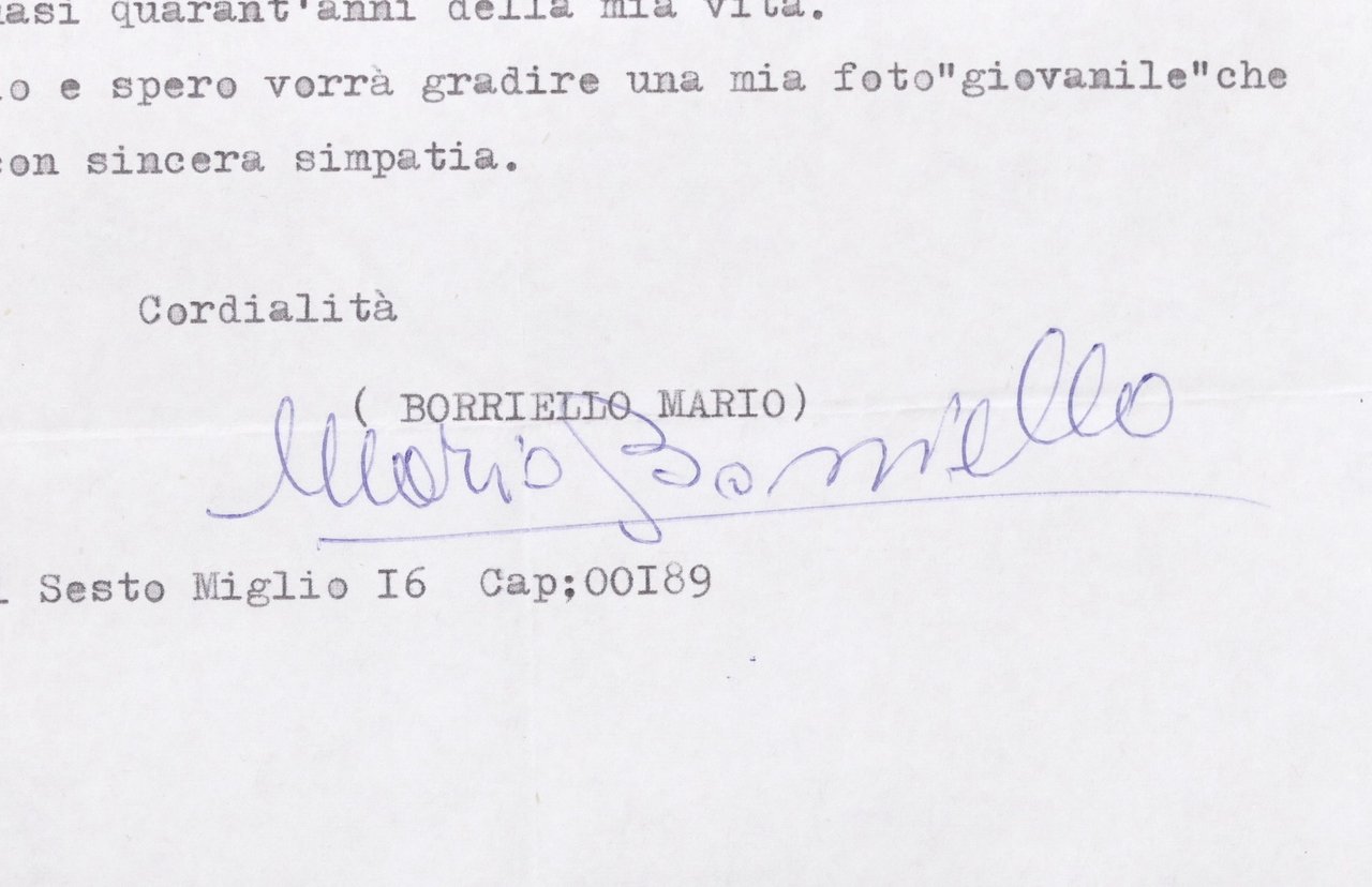 Musica Lirica - Lettera con autografo del baritono Mario Borriello - 1980 Dimensioni: 17,5 x 26,5 cm ca. Condizioni molto buone. Il baritono italiano Mario Borriello [1914-2000] nacque a Vienna, ma viaggiò in Italia da ragazzo dove studiò voce e fece il suo debutto all'Opera di Roma nel 1942, durante la seconda guerra mondiale. Ha partecipato a diverse stagioni al Comunale di Firenze, alla Scala di Milano e al San Carlo di Napoli.
