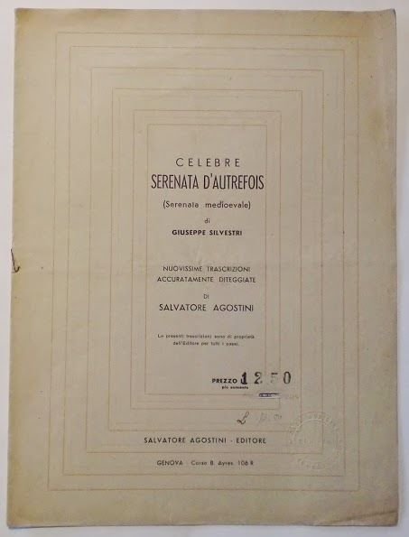Musica Spartito - Celebre serenata d'Autrefois - G. Silvestri - Pianoforte -1944