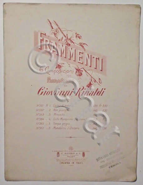 Musica Spartito - Frammenti - 6 composizioni - Pianoforte - G. Rinaldi