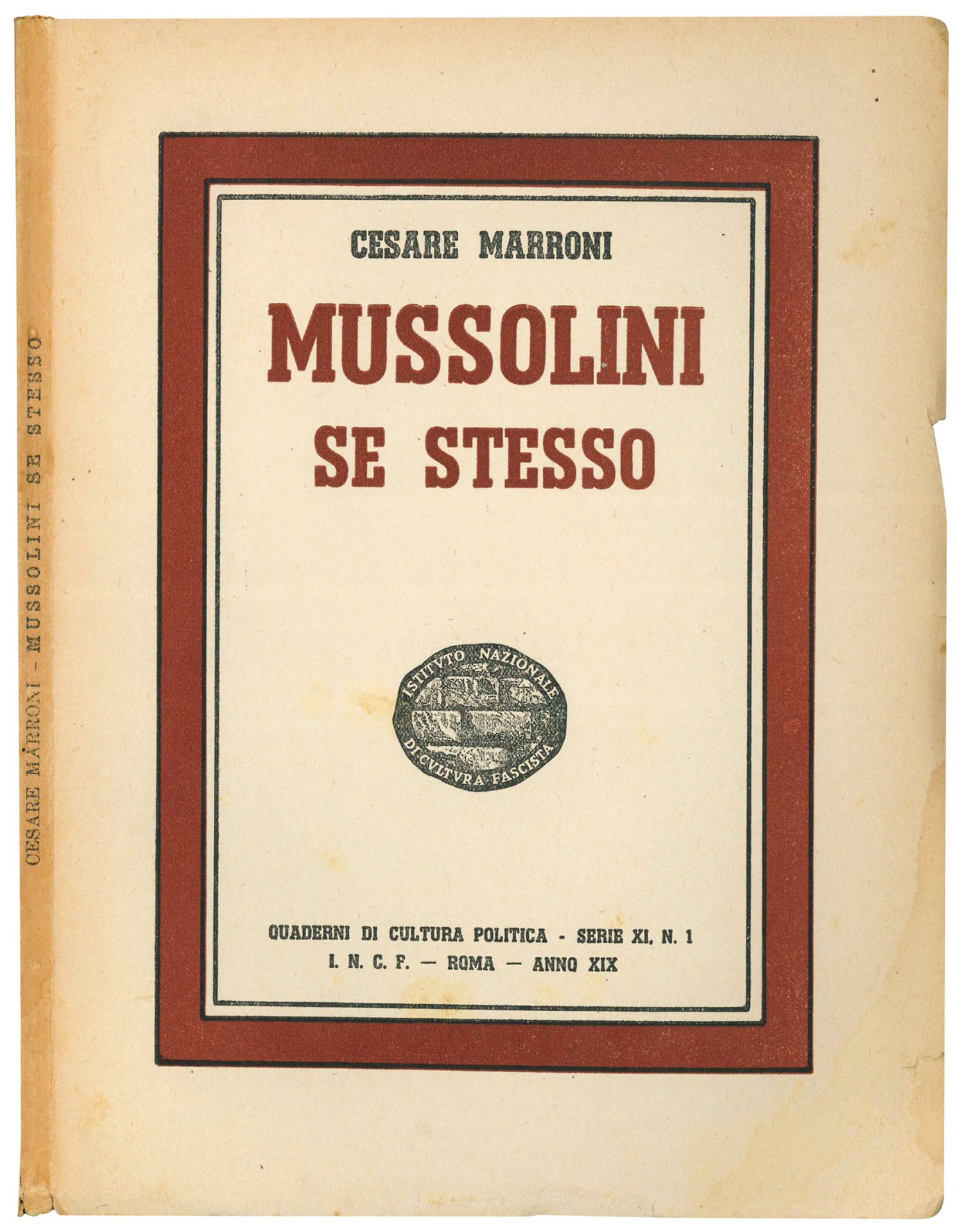 Mussolini se stesso. Quaderni di Cultura Politica - Serie XI, N. 1.
