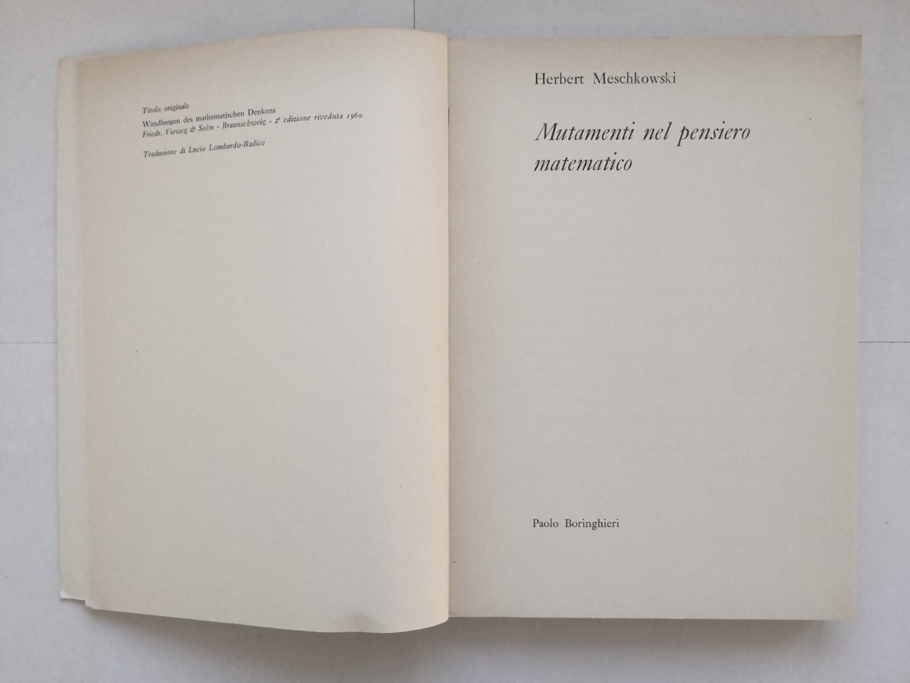 MUTAMENTI NEL PENSIERO MATEMATICO di Herbert Meschkowski 1967 Boringhieri