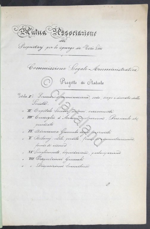 Mutua Associazione Proprietari Spurgo dei Pozzi Neri - Progetto di Statuto 1864