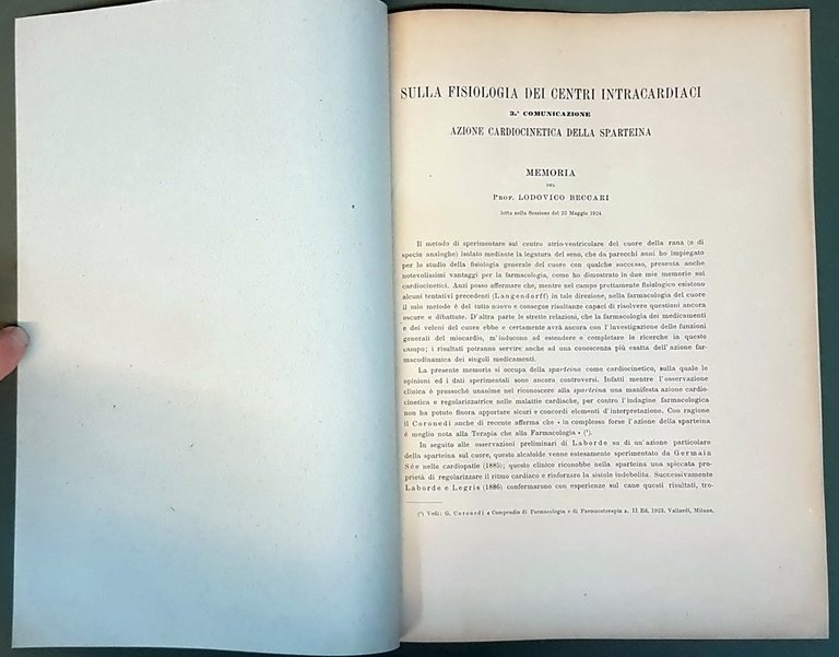 N. 2 fascicoli di medicina: RICERCHE SULE VARIAZIONI DI ECCITABILITA' DEL VAGO E DELL'APPARECCHIO VASOMOTORE - SULLA FISIOLOGIA DEI CENTRI INTRACARIACI (3° COMUNICAZIONE) AZIONE CARDIOCINETICA DELLA SPARTEINA